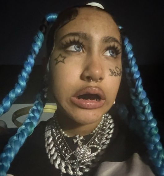 최근 노스는 자신의 SNS(틱톡)를 통해 얼굴 문신과 피어싱, 블루 브레이드 헤어로 꾸민 영상을 연이어 공개했다. 눈 밑에는 별 모양의 문신이, 왼쪽 볼에는 자신의 이름이 커서체로 새겨진 듯한 가짜 타투가 자리했다. 여기에 검은색 그릴(치아 장식)과 코 피어싱, 컬러 콘택트렌즈까지 착용해 완벽한 ‘틴에이저 힙스타일’을 완성했다.