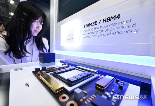 제27회 반도체대전이 22일 서울 강남구 코엑스에서 열렸다. 참관객이 삼성전자의 6세대 고대역폭 메모리 'HBM4'를 살펴보고 있다. 이동근기자 foto@etnews.com [Copyright © 전자신문. 무단전재-재배포금지]