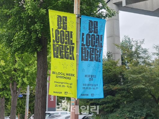 APEC 정상회의 개최 기념으로 네이버 지도로 경주 황리단길에 있는 로컬 상점을 소개하는 ‘비로컬위크’ 캠페인 안내 현수막이 걸려있다. (사진=네이버) |