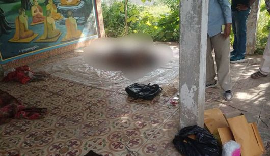 캄보디아 프놈펜 외곽에서 발견된 중국인 남성의 시신을 경찰이 조사하고 있다. (크메르타임스 캡쳐) |