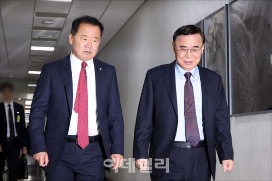 [이데일리 노진환 기자] 신성범(왼쪽) 국회 정보위원회 위원장과 이종석 국가정보원장이 22일 오전 서울 여의도 국회에서 열린 국회 정보위원회 전체회의 시작 전 정보위원장실로 향하고 있다.