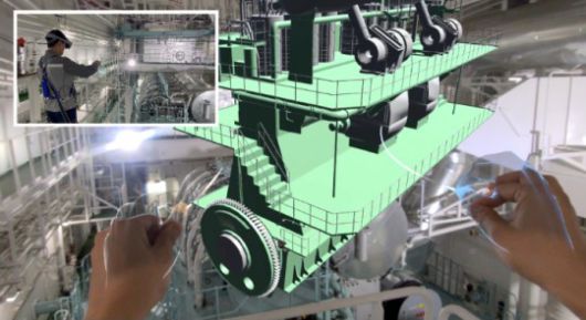 XR기술(갤럭시XR)을 활용해 선박 엔진을 검사하는 모습. /사진제공=삼성중공업 |