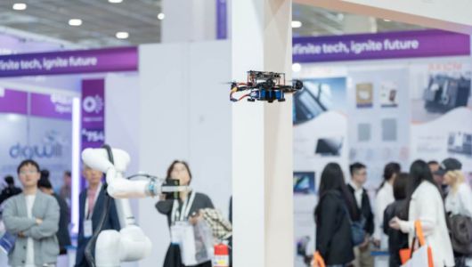 양사 관계자는 "이 드론은 아웃도어용 보다 작은 크기인 인도어 형태로 세팅됐다"며 "실내 관람객의 안전을 위해 지정된 장소를 비행하는 규모로 시연됐다"고 말했다. 또 "GPS 신호 없이 비전 카메라만으로 사물을 인식하고 자가 생성한 좌표로 완전 자율 비행을 선보였다"고 설명했다.