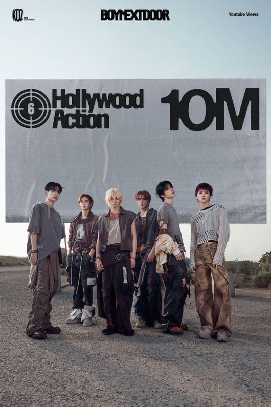 보이넥스트도어(성호, 리우, 명재현, 태산, 이한, 운학)가 지난 20일 발매한 미니 5집 'The Action' 타이틀곡 'Hollywood Action' 뮤직비디오는 23일 오전 2시 2분 유튜브 조회 수 1000만 건을 돌파했다. 뮤직비디오는 여섯 멤버의 능청스러운 연기와 화려한 시각 효과, 힘이 넘치는 군무로 보는 맛을 끌어올린다. 도심과 사무실 등 현실적인 배경에서 판타지 영화처럼 비현실적인 장면을 연출하는 센스가 돋보인다.
