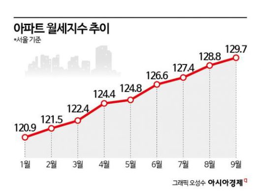 이미 임대인들은 안정적인 월세로 돌아서고 있다. 세입자들은 높아진 대출 문턱에 월세를 선택할 수밖에 없는 상황에 몰렸다. 국토교통부 주택통계에 따르면 임대차 계약 중 월세 비중은 지난 8월까지 평균 62.2%를 기록했다. 아파트 월세 비중마저 46.8%로 과반에 육박했다. 모두 역대 최고치다. KB부동산의 서울의 아파트 월세 지수는 매달 역대 최고치를 갈아치우며 지난 9월 129.7을 기록, 약 4년 만에 30% 가까이 폭등했다.