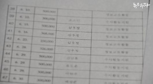 심 전 총장이 서울동부지검장으로 재임한 시기는 2021년 6월부터 2022년 6월까지다. 아래 사진은 심 전 총장이 지검장 임기를 시작한 2021년 6월 서울동부지검의 특수활동비 지급 장부 중 일부다.