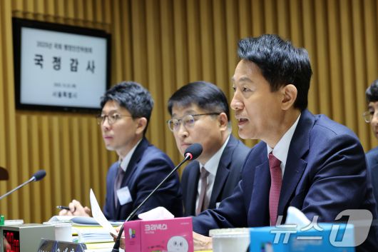 오세훈 서울시장이 23일 오전 서울 중구 서울시청에서 열린 국회 행정안전위원회 서울시청 국정감사에서 의원질의에 답하고 있다. 2025.10.23/뉴스1 ⓒ News1 황기선 기자 |