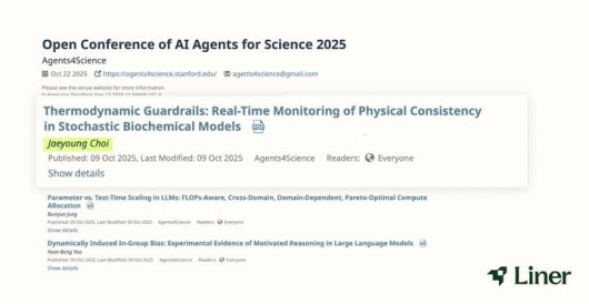 글로벌 AI 검색 스타트업 라이너는 자사의 리서치 AI 에이전트를 활용해 완성된 논문 3편이 세계 최초 AI 저자 중심 학술 행사인 'Agents4Science 2025'에 최종 채택됐다고 23일 밝혔다. 이 가운데 한국과학영재학교 1학년 최재영 군의 논문이 상위 11편만 선정되는 '스포트라이트' 논문으로 채택됐다.