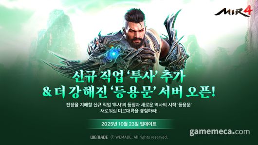 위메이드 MMORPG ‘미르4’가 23일 신규 직업 ‘투사’와 성장 특화 서버 ‘등용문’을 공개했다.