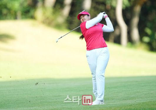 [이데일리 골프in(고양) 조원범 기자]23일 경기도 고양시에 위치한 뉴코리아CC (파72, 6542야드)에서 '한화 라이프플러스 인터내셔널크라운'(총상금 $2,000,000.우승상금 50만 달러(약 7억1000만원)1라운드 포볼 매치플레이가 진행되었다. 릴라 부가 11번홀에서 경기하고 있다.