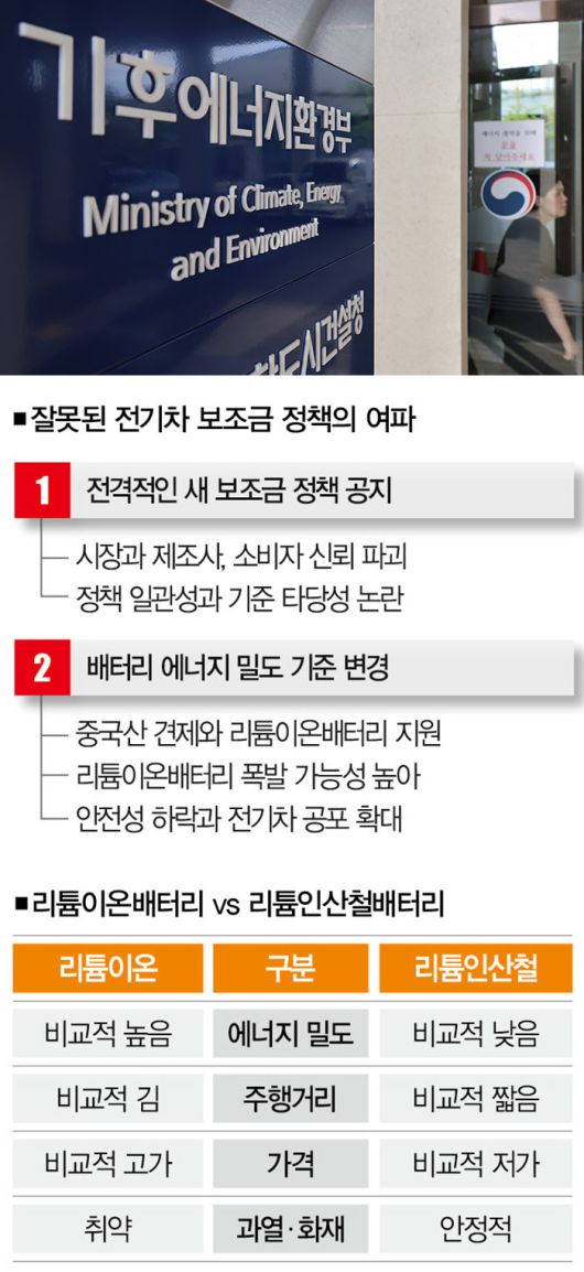 어찌 된 영문인지 아무런 사전 정보도 없이 시행 직전에 공지하곤 한다. 그러다 보니 국내 기업들조차 미리 대비하고 준비할 시간적 여유가 없다. 정책의 일관성을 해치고, 정부 신뢰도도 떨어뜨리는 방식이 전기차 시장에 긍정적일지 의문이다.