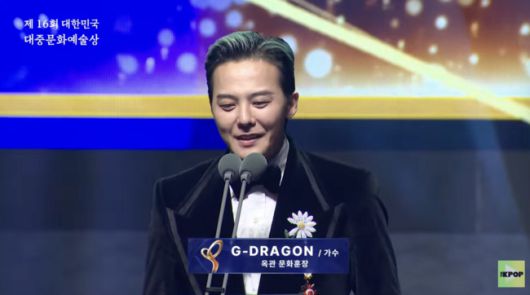 수상을 위해 무대에 오른 지드래곤은 긴장된 모습을 보이면서도 "최연소 수훈자, 가수 지드래곤"이라며 인사를 전했다.