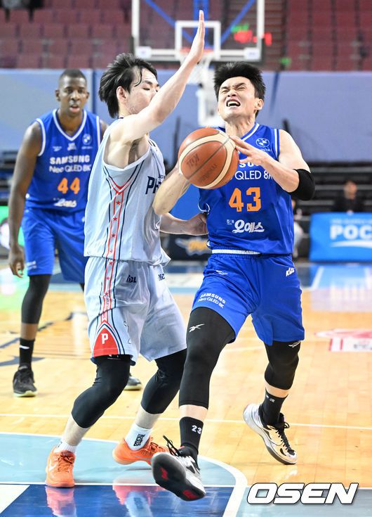 [OSEN=잠실실내체, 이대선 기자] 23일 오후 서울 잠실실내체육관에서 ‘2025-2026 LG전자 프로농구’ 서울 삼성과 울산 현대모비스의 경기가 열렸다. 삼성은 2승 3패로 8위, 현대모비스는 3승 4패로 6위를 기록 중이다. 2쿼터 삼성 이대성이 드리블 돌파를 하고 있다. 2025.10.23 /sunday@osen.co.kr
