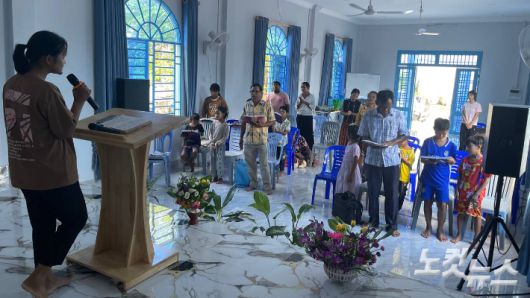 캄보디아 교회에서 예배 드리는 모습. 옥해실 선교사 제공 |