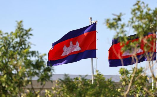15일(현지시간) 캄보디아 테초국제공항에 게양된 캄보디아 국기. 2025.10.15 뉴스1 |