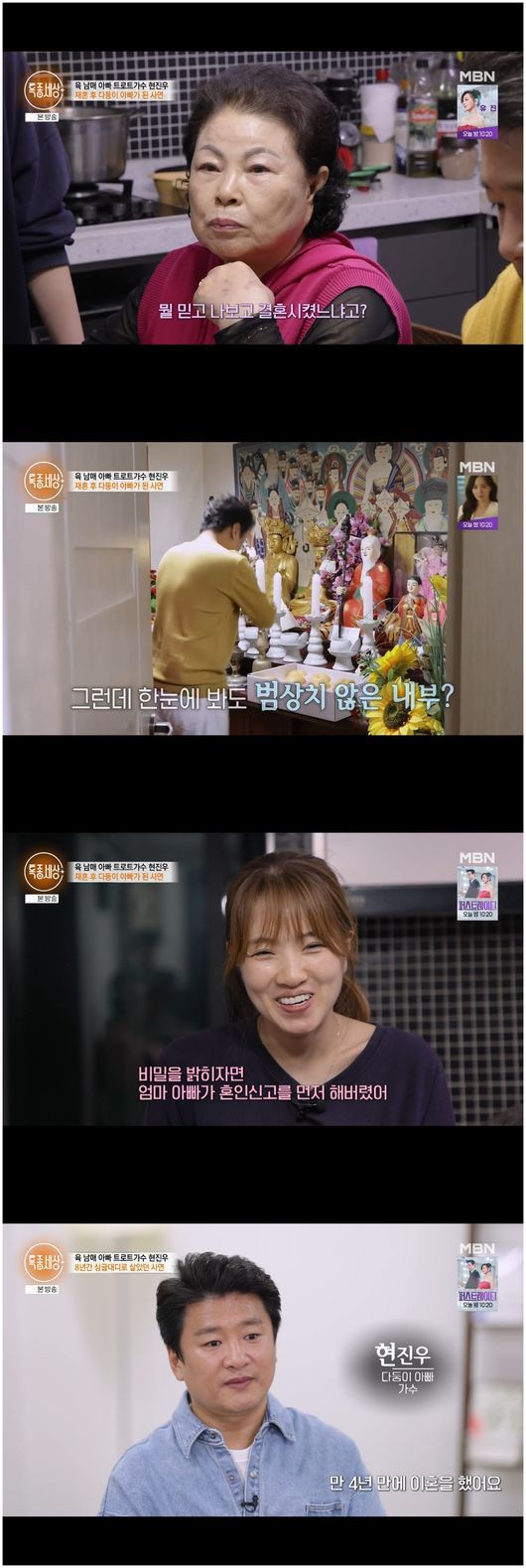 현진우는 “결혼 후 만 4년 만에 이혼했다. 나이, 학벌, 재산, 이름, 전처의 거짓의 끝을 모르겠더라. 압류 딱지가 붙었다. 빨간 딱지들이 붙었다. 또 빚이 생기고, 또 사치하는 데 쓰더라”라며 2년 이혼 소송 끝에 헤어질 수 있었다고 말했다. 이 중 셋째 딸은 전처가 임신 당시 이혼 소송을 하게 되어 엄마 얼굴도 제대로 모르고 자라났다.