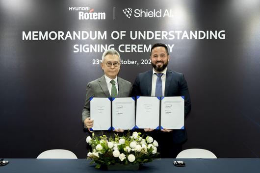 현대로템은 지난 23일 경기 고양시 킨텍스(KINTEX)에서 열린 ‘2025 서울 국제 항공우주 및 방위산업 전시회(ADEX)’에서 미국의 AI 솔루션 업체인 ‘쉴드(Shield)AI’와 국방 AI 기반 다목적 드론 운용 기술 개발을 위한 업무협약(MOU)을 체결했다.