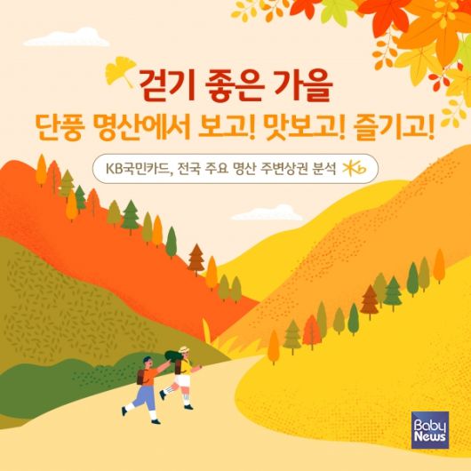 KB국민카드(사장 김재관)가 단풍이 물드는 가을을 맞아 2024년 9월부터 2025년 8월까지 1년간 전국 국립공원을 품은 명산 입구 주변 상권을 방문한 고객의 신용·체크카드 결제데이터 약 150만건을 분석했다. ⓒKB국민카드 |