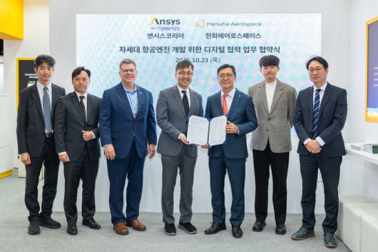 글로벌 엔지니어링 시뮬레이션 선도 기업인 앤시스코리아(대표 박주일)가 지난 23일 서울 국제항공우주 및 방위산업 전시회(ADEX 2025)에서 한화에어로스페이스와 함께 국내 항공엔진 개발 역량 강화와 디지털 엔지니어링 기반 혁신 생태계 조성을 위한 업무협약(MOU)을 체결했다고 밝혔다.