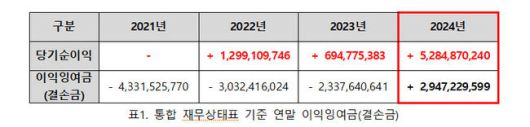 음저협은 통합재무제표 기준으로 매년 흑자를 기록하며 누적결손금이 지속적으로 개선되고 있으며, 가장 최근인 2024년 말 기준 약 53억 원의 당기순이익을 달성했다고 밝혔다. 이에 따라 누적 이익잉여금이 +29억 원으로 전환되며 재정 구조가 한층 안정화됐다고 덧붙였다.