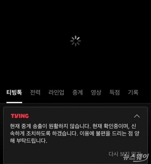 국내 온라인동영상서비스(OTT) 티빙이 중계하는 '2025 신한 SOL Bank KBO 플레이오프'가 먹통되는 사고가 발생했다.