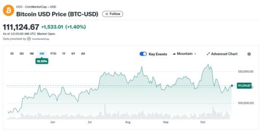 비트코인 차트, 자료=야후 파이낸스, 2025.10.24 koinwon@newspim.com |