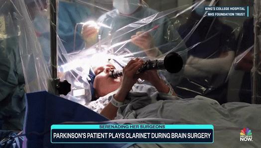 (파킨슨병 수술 중 클라리넷을 연주한 60대 영국 여성. NBC News) |
