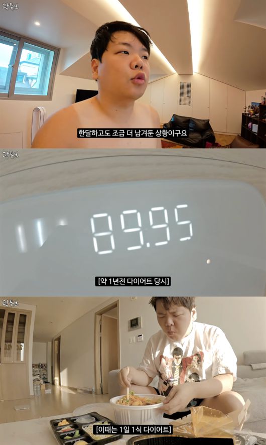 약 1년 전 곽튜브는 체중이 90kg 가까웠다. 당시에는 1일 1식 다이어트를 했다. 곽튜브는 “쓸데없는 짓 안 하고 중간에 치팅데이 안하고 진짜 다이어트를 해서 결혼식에는 그래도 70kg 대 중반까지는 힘들지 모르겠지만 일단 목표는 70kg 중반까지는 빼는 거다”고 했다.