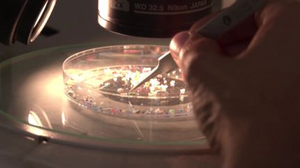 임신한 생쥐가 폴리에틸렌으로 이뤄진 미세플라스틱 젤리를 먹습니다.