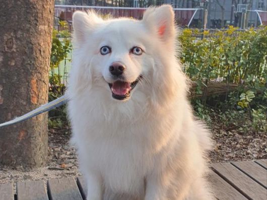 모찌는 성격도 좋지만 스피츠와 허스키의 믹스견으로 무엇보다 새하얀 털과 파란 눈이 사람들의 눈길을 사로 잡습니다. 이런 매력 덕분에 입양 문의도 몇 번 들어왔지만, 털이 많이 빠진다는 이유로 아직 가족을 만나지 못했습니다. 모찌는 미용(털깎이)을 해도, 털을 그대로 길러도 각각의 매력이 넘칩니다.