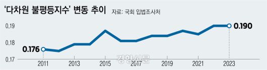 분석 결과, 최근 12년간(2011~2023년) 다차원적 불평등 지수는 2011년 0.179에서 2023년 0.190으로 상승해 사회 전반적 불평등이 심화된 것으로 나타났다.