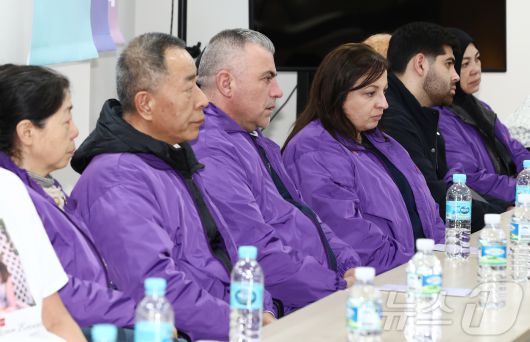 (서울=뉴스1) 김민지 기자 = 26일 오후 서울 종로구 10.29 이태원참사 기억소통공간인 별들의집을 찾은 외국인 희생자 유가족들이 송해진 유가족협의회 운영위원장의 발언을 듣고 있다. 2025.10.26/뉴스1kimkim@news1.krCopyright ⓒ 뉴스1. All rights reserved. 무단 전재 및 재배포, AI학습 이용 금지.