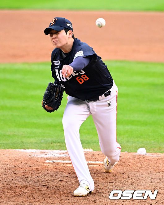 [OSEN=잠실, 지형준 기자] 26일 오후 서울 잠실야구장에서 2025 신한 SOL Bank KBO리그 포스트시즌 한국시리즈 1차전 LG 트윈스와 한화 이글스의 경기가 열렸다. LG는 앤더스 톨허스트, 한화는 문동주를 선발 투수로 내세웠다. 6회말 한화 조동욱이 역투하고 있다. 2025.10.26 /jpnews@osen.co.kr