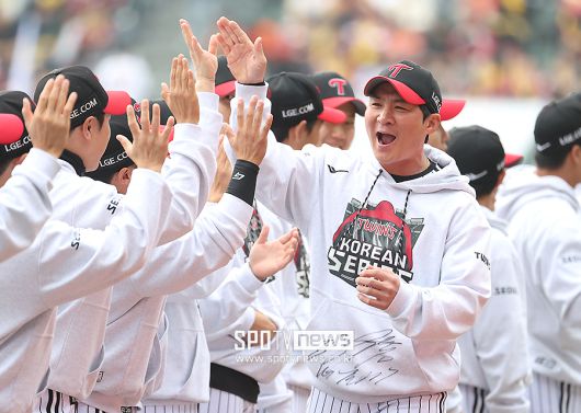 [스포티비뉴스=잠실, 곽혜미 기자] 2025 신한 SOL뱅크 KBO 한국시리즈 LG와 한화의 1차전이 26일 오후 서울 송파구 잠실야구장에서 열렸다. LG 오지환이 하이파이브를 하고 있다. <저작권자 ⓒ SPOTV NEWS. 무단전재 및 재배포 금지>