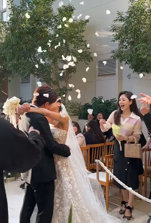 특히 입을 맞추는 신랑신부의 머리 위로 꽃잎을 날려주며 축하하는 모습이 눈길을 끌었다. 오나는 "진짜 아름다웠다. 여러모로 성공한 예식"이라며 축하를 전했다.