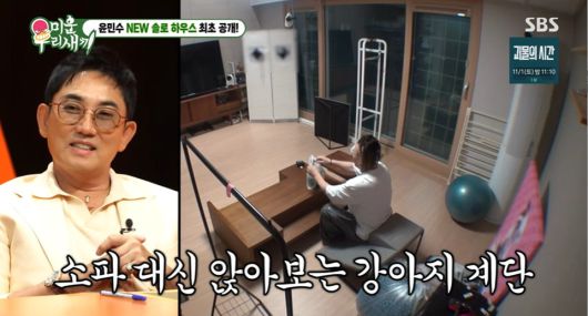 마지막으로 4층에는 윤후의 취미 공간과 넓은 테라스가 준비되어 있었다. 윤민수는 거실로 내려와 소파 대신 강아지 계단에 앉았다. 이를 본 이승철은 "짠하다, 진짜"라며 따뜻하게 미소를 지었다.