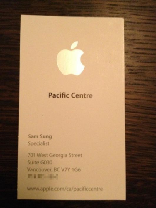샘은 2012년 캐나다 밴쿠버의 한 애플 매장에서 일했는데, 당시 'Sam Sung'이라고 적힌 명함 사진이 온라인 커뮤니티 레딧에 올라오면서 화제가 됐다. 전 세계 스마트폰 사업에 가장 치열한 경쟁 관계에 있는 삼성전자와 애플의 구도로 인해 그의 명함은 온라인상에서 빠르게 퍼져나갔다.