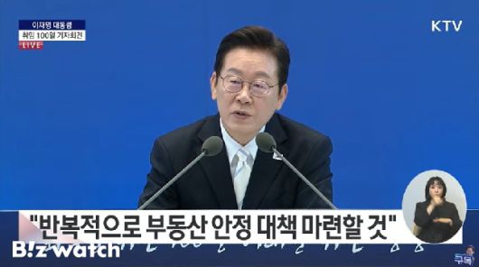 지난 9월11일 이재명 대통령이 '취임 100일 기자회견'을 열고 부동산시장 관련한 이야기를 하고 있다./자료=KTV 생방송 캡처 |