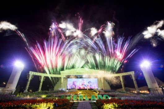 에버랜드는 지난 12일 '골든(Golden)', '하우 잇츠 던(How It's Done)', '소다 팝(Soda Pop)', '유어 아이돌(Your Idol)' 등 영화 속 히트곡들과 수천 발의 불꽃, 영상, 특수효과 등이 어우러진 신규 야간 공연 '케이팝 데몬 헌터스 싱어롱 불꽃쇼'를 새롭게 론칭했다.
