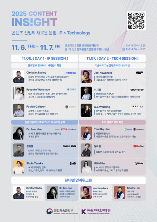 유현석 콘진원 원장직무대행은 "지식재산과 기술의 융합은 K콘텐츠가 세계로 뻗어가는 핵심 동력"이라며 "이번 행사는 창의성과 첨단기술이 결합한 산업 비전을 공유하고, 차세대 인재와 생태계를 함께 성장시키는 계기가 될 것"이라고 말했다.