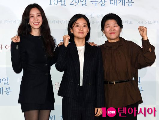[텐아시아=조준원 기자]고혜진 감독, 정려원, 이정은이 27일 서울 용산구 CGV 용산아이파크몰에서 열린 영화 '하얀 차를 탄 여자' 언론시사회에 참석하고 있다.