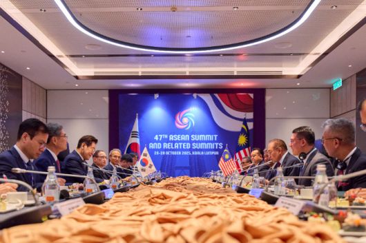 강 대변인은 "양 정상은 이번 정상회담을 통해 한국과 말레이시아 간 FTA 협상이 타결된 것을 환영했다"며 "이를 기반으로 양국 간 교역과 투자가 보다 확대됨은 물론 디지털·AI 등 전략 산업 분야에서 협력이 보다 가속화될 것으로 기대했다"고 전했다.