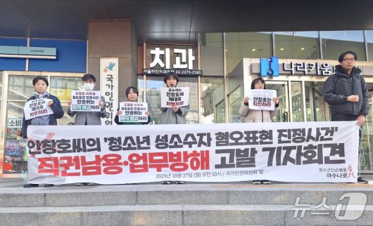 (서울=뉴스1) 한수현 기자 = 청소년 인권 단체가 안창호 국가인권위원회 위원장이 성소수자 혐오 표현 관련 진정에 대해 소위원회 안건 상정을 부당하게 막았다며 고위공직자범죄수사처에 고발하겠다고 밝혔다.