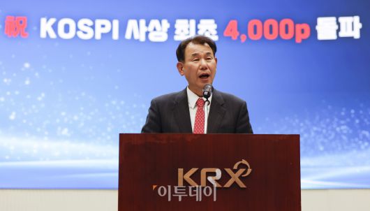 정은보 한국거래소 이사장은 코스피 지수가 사상 처음 4000선을 넘긴 27일 “코스피 4000포인트(p)는 5000포인트를 향해 가기 위한 새로운 출발선”이라고 밝혔다.