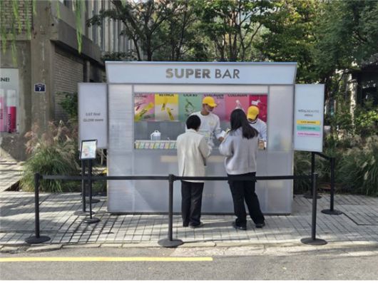 팝업에서 미션을 완성하면 야외의 슈퍼 바에서 이너 뷰티 제품으로 만든 음료와 디저트가 제공된다. 슈퍼 바에선 슈퍼레티놀과 슈퍼시카 B5로 만든 음료와 슈퍼 콜라겐 케라핏이 뿌려진 크루아상 등이 증정됐다. 이를 통해 고객들이 즐겨 먹는 맛있는 음료와 빵을 통해 이너 뷰티 제품을 거부감 없이 일상 속에서 즐길 수 있도록 했다.