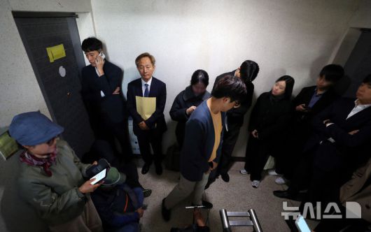 [서울=뉴시스] 김혜진 기자 = 12·3 비상계엄 관련 내란·외환 의혹을 수사하는 조은석 특별검사팀이 27일 서울 용산구 이태원동 황교안 전 국무총리 자택에서 압수수색하기 위해 대기하고 있다. 2025.10.27. jini@newsis.com |