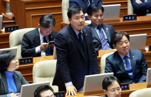 조계원 더불어민주당 의원이 2일 국회 본회의에서 의사진행발언을 하는 구자근 예결특위 국민의힘 간사를 향해 항의하고 있다. 김현민 기자 |