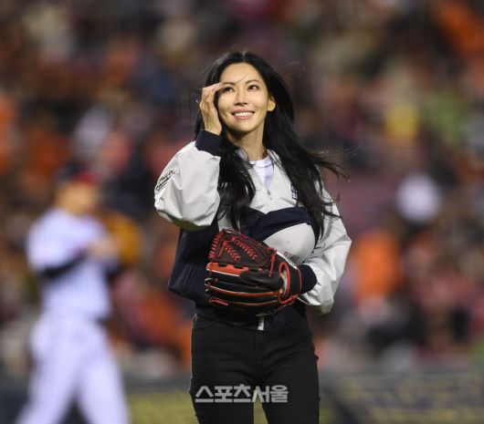 배우 김소연이 27일 서울 잠실구장에서 열린 2025 KBO 포스트시즌 한국시리즈 2차전 한화와 LG의 경기 시구 후 관중에 인사를 하고 있다.2025. 10. 27.잠실 | 최승섭기자 thunder@sportsseoul.com [기사제보 news@sportsseoul.com] Copyright ⓒ 스포츠서울&sportsseoul.com