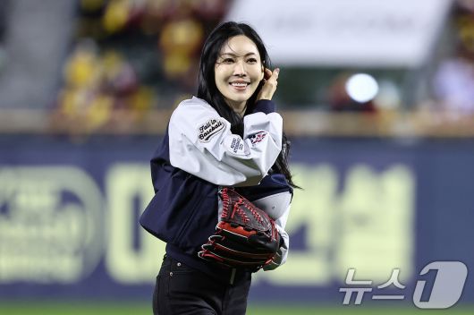 (서울=뉴스1) 김도우 기자 = 배우 김소연이 27일 서울 잠실야구장에서 열린 프로야구 2025 신한 SOL뱅크 KBO 포스트시즌 한국시리즈 2차전 한화 이글스와 LG 트윈스의 경기에 앞서 시구를 하고 있다. 2025.10.27/뉴스1pizza@news1.krCopyright ⓒ 뉴스1. All rights reserved. 무단 전재 및 재배포, AI학습 이용 금지.