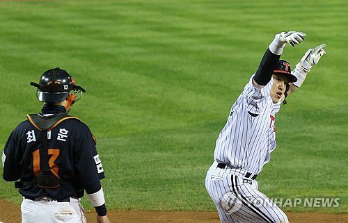 3회말 2사 1루 상황에서 LG 박동원이 투런홈런을 치고 세리머니를 하고 있다. 2025.10.27